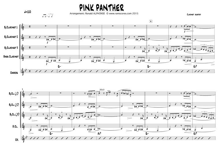Pink Panther Clarinet quartet sheet music